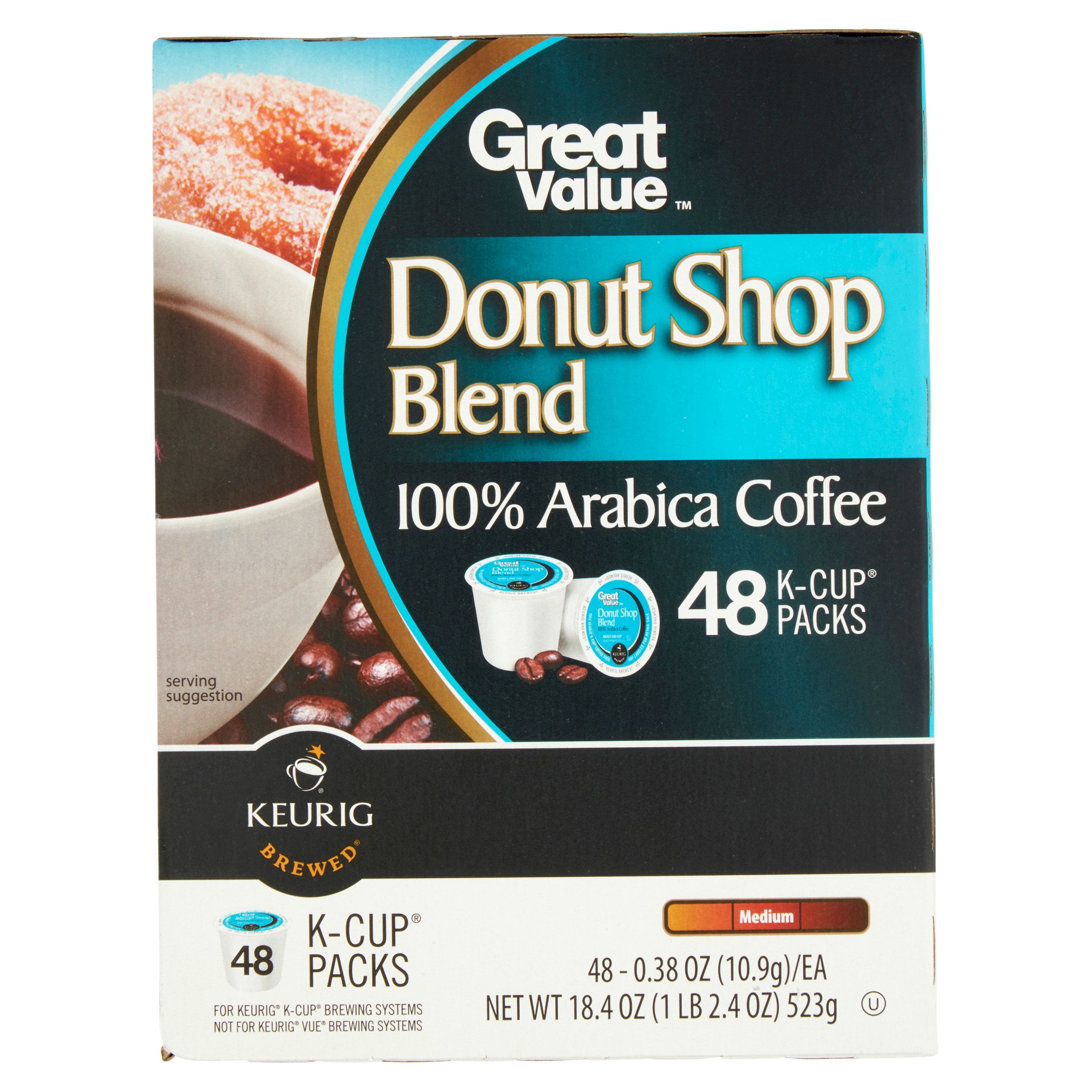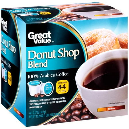 Exploding pods or finding grinds in some of your coffee cups: About member's mark donut shop coffee. <br /> <br />great value products provide families with affordable, high quality grocery and household consumable options. Great value coffee pods 96 count coffee pods Nothing satisfies quite like the taste of original donut shop coffee. It is a medium roast, not too dark or too light, with just the right taste. This is part of our comprehensive database of 40,000 foods including foods from hundreds of popular restaurants and thousands of brands. Everyone would love to always drink starbucks coffee pods, but at almost a buck a piece, it get expensive. I am having trouble with the great value 100% arabica donut shop k cups as they are not letting the water flow through and causing a huge mess. Coffee pods online market with greatest options of coffee pods. Great flavor, especially when used as advertised. The flavors are dark but not overly so. These pods run a close second and for.33 cents each, it's a great deal for a great coffee.